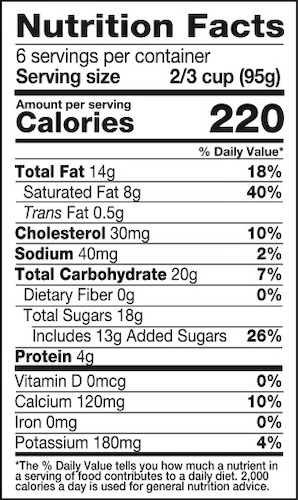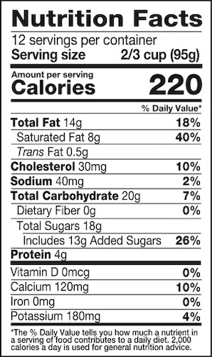 WATER, ANHYDROUS MILK FAT, SUGAR, SKIM MILK POWDER, CORN SYRUP SOLIDS, ROASTED ALMONDS (ALMONDS, CANOLA OIL AND/OR SAFFLOWER OIL), STABILIZER/EMULSIFIER (MONO- AND DIGLYCERIDES, GUAR GUM, CELLULOSE GUM, CARRAGEENAN & STANDARDIZED WITH DEXTROSE), NATURAL & ARTIFICIAL FLAVOURS.