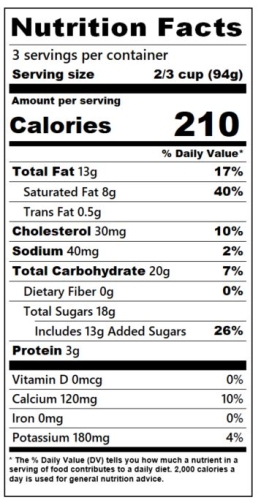 WATER, ANHYDROUS MILK FAT, SUGAR, SKIM MILK POWDER, CORN SYRUP SOLIDS, ROASTED PISTACHIOS, ROASTED ALMONDS (ALMONDS, CANOLA AND/OR SAFFLOWER OIL), GREEN MARASCHINO CHERRIES, ARTIFICIAL FLAVOUR, STABILIZER/EMULSIFIER (MONO- AND DIGLYCERIDES, GUAR GUM, CELLULOSE GUM & CARRAGEENAN STANDARDIZED WITH DEXTROSE), ARTIFICIAL COLOURS (FD&C YELLOW 5, FD&C BLUE 1, FD&C RED 40).